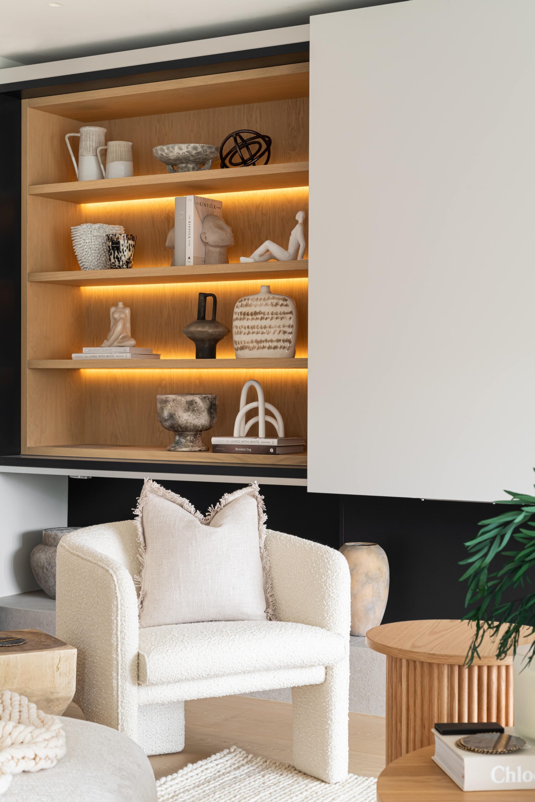 The open-plan living space flows effortlessly from lounge to dining to kitchen, offering a sense of spatial harmony. Warm neutral tones, layered textures, and refined modern accents create a calm, cohesive sanctuary in the heart of the city.